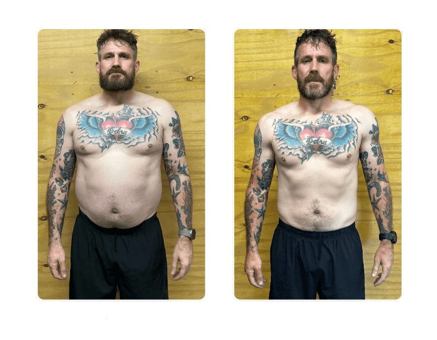 Euan began his journey at 112kg and is now down to 78kg, completely transforming his body and lifestyle. Through a personalized plan, consistent training, and expert guidance, he’s achieved results that go far beyond the scale.